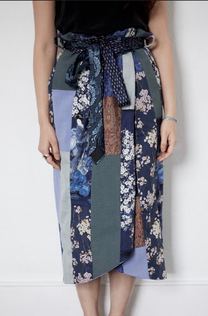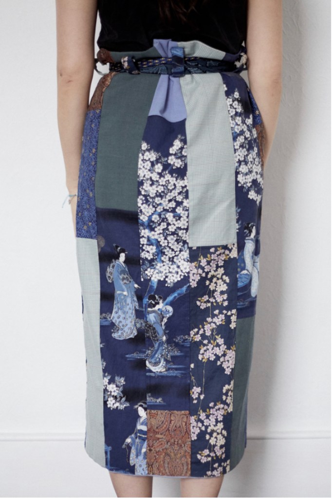 Among my little collection of designer garments, to my own surprise, the one piece that I am most emotionally attached to is this patchwork ‘paperbag’ skirt I got on a research trip to Lyon – the city of silk in Europe – during my MA at the Royal College of Art. It patches together vintage Japanese kimono fabric in blue floral, Indian silk in a chocolate paisley, French linen and Scottish houndstooth tweed in mint green. The designer kindly gifted me a belt that is of vintage French ties sewn together to create an ‘obi’, a sash for traditional Japanese dress look. The trip took place after a term of taking a module on ‘Global Bodies and Transnational Fashion’ with Dr. Sarah Cheang and just beginning to research and write about transnational fashion. To have encountered this skirt in that particular time and space was meaningful. It not only embodies the idea of transnationality in the most literal sense through its materiality, it also serves as an unwavering witness of the temporal and spatial continuity – the multiple lives possible for textiles products.